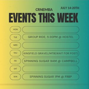If your on Facebook, CRNEMBA posts the weekly schedule every Monday of the upcoming weeks events. As of now here’s what’s happening: