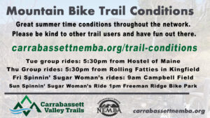 Group rides are a great way to interact with fellow mountain bikers. Learn new trails, meet new people and discover different lines. Now that summer is in full swing, there are a variety of different rides that happen throughout the week. From Carrabassett down to Kingfield, there’s something for everyone. Grab your bike and join one!