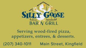 Located just south of town on Main Street in Kingfield you’ll find the Silly Goose. Home of delicious wood fired pizzas, appetizers, entrees, and a full service bar including the largest Bourbon selection in the area. Check it out on your way to or from the Sugarloaf region…