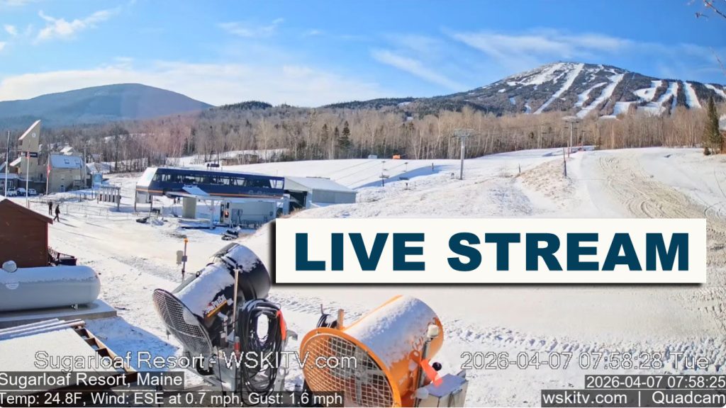 The Maine High Peaks Region has weather that can often surprise folks from away, so WSKI’s Quad Cam is your eye to the skies in the mountains, no matter where you are! See what the on-mountain weather & conditions are like LIVE in real time from the base of the Sugarloaf Super Quad!